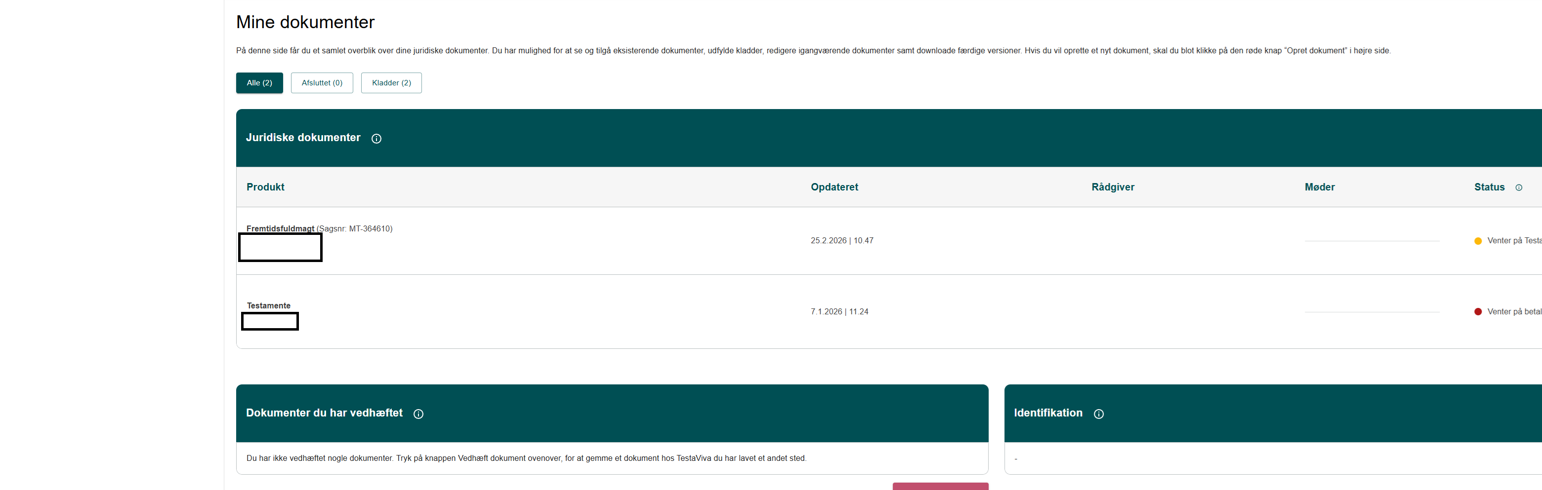 - Når du er inde på siden “Mine dokumenter", kan du se overblikket over alle dine dokumenter.
