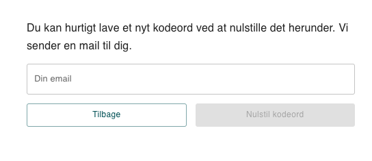 4. Indtast din email her og tryk på "Nulstil kodeord", så skulle du gerne modtage nustillingslinket via din email indenfor kort tid